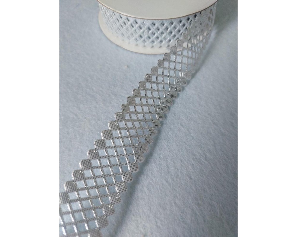 Лента атласная сетка/ шир.23мм/ цв.серебро, цена за 1 м