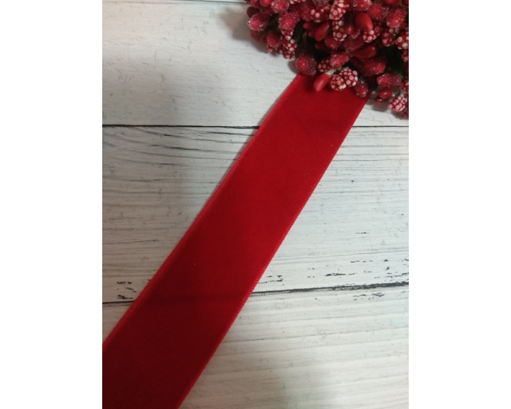 Лента бархатная 2,5 см, цв. красная 45, цена за 1 м