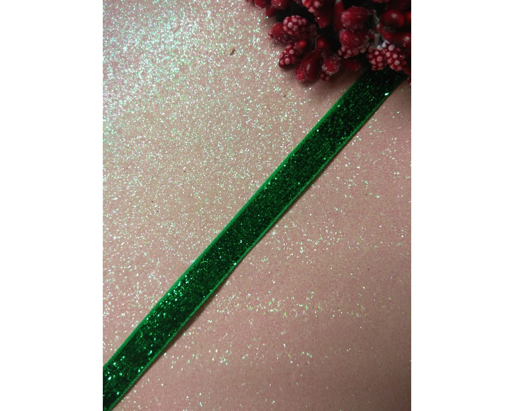 Лента бархатная с люрексом 1см цв. зеленый, цена за 1 м