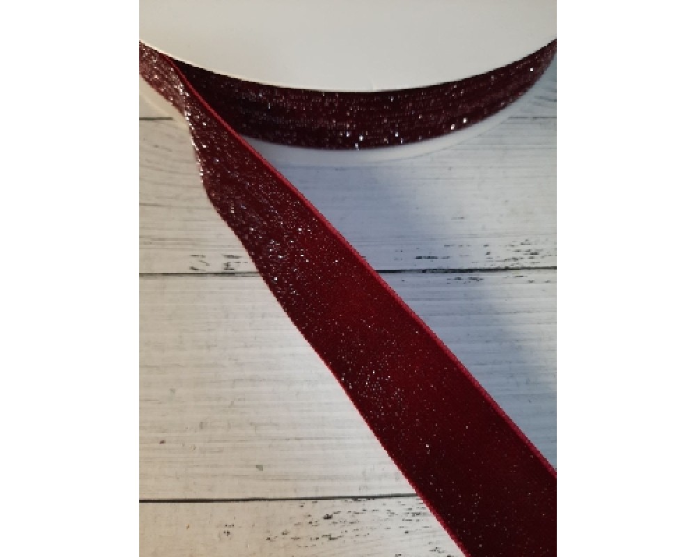 Лента бархатная с люрексом 2,5 см бордовый 119, цена за 1 м