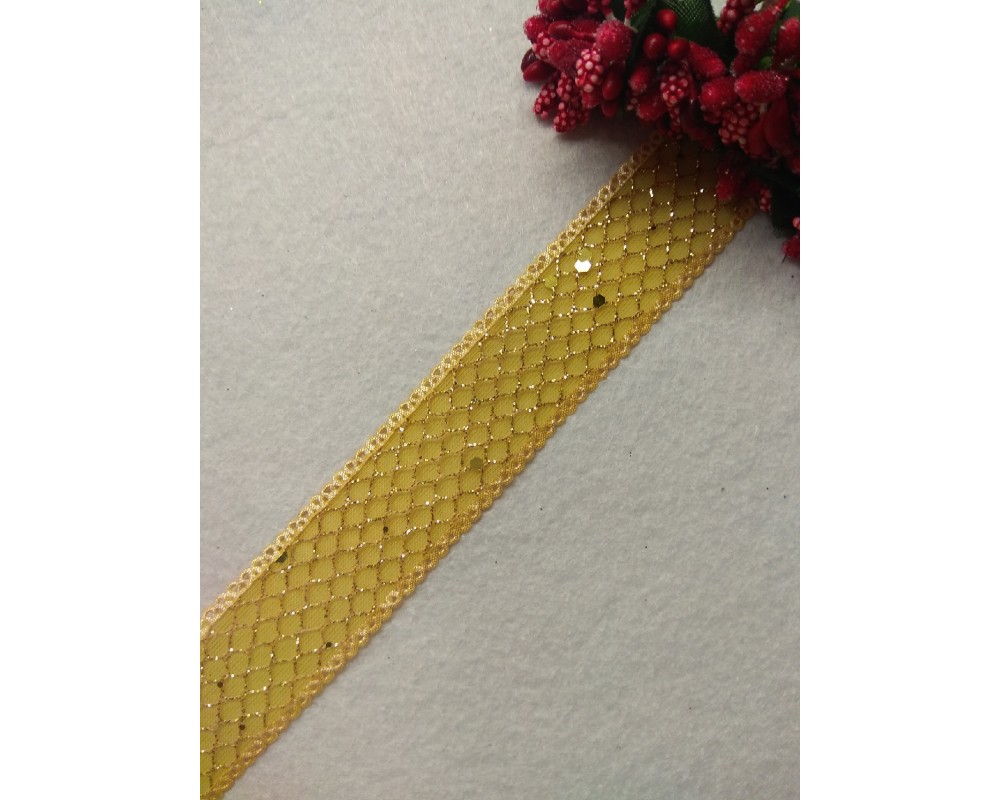 Лента с сеточкой и блестками 2,5 см, цв. золотой, цена за 1 м