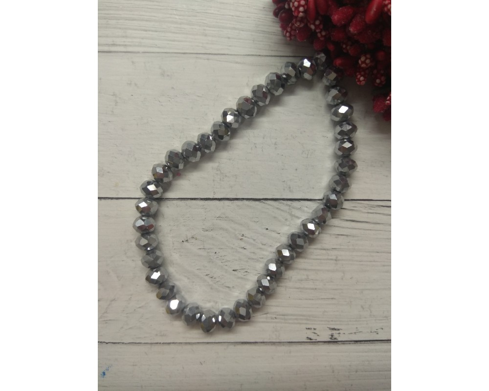 Бусины стеклянные, металлик, на леске "Rondelle" 8 мм серебро, цена за 20 шт