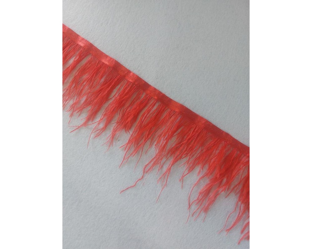 Страусиные перья на ленте цв. красный, цена за 25 см