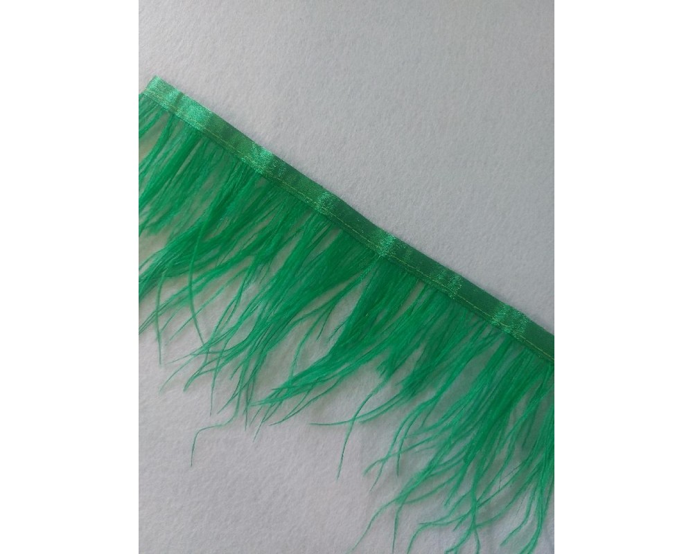 Страусиные перья на ленте цв. зеленый, цена за 25 см