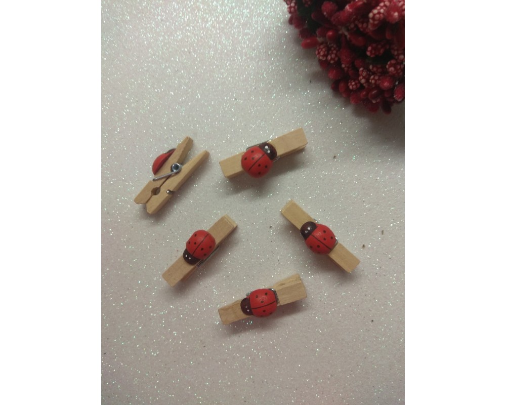 Прищепки деревянные с божьми коровками красными 3,5 см, цена за 1 шт
