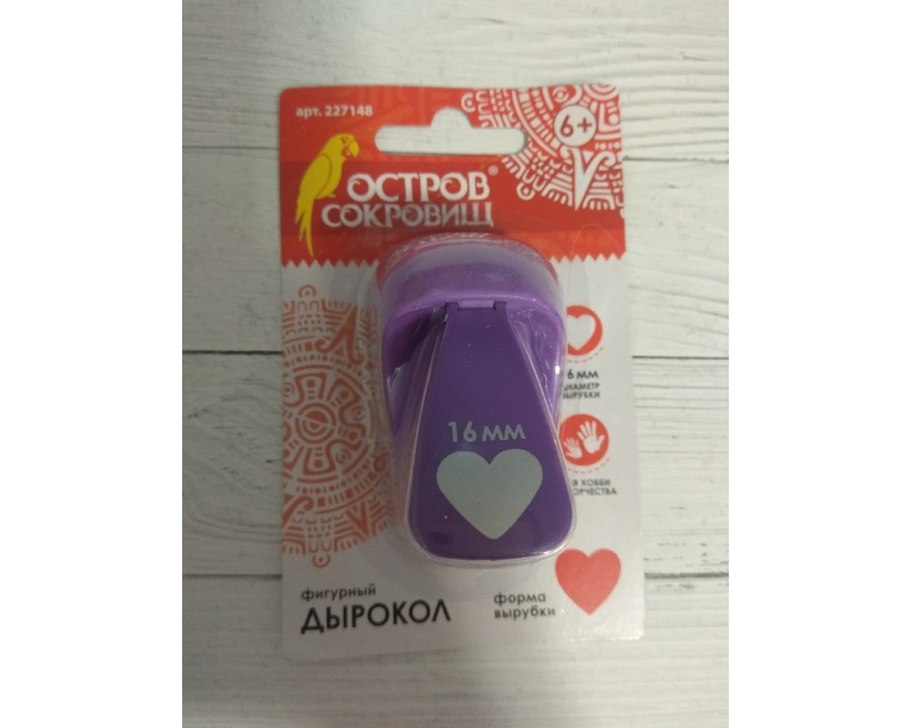 Дырокол фигурный "Сердце", диаметр вырезной фигуры 16 мм