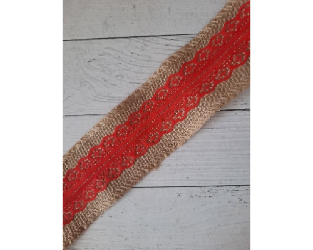 Лента из мешковины с кружевом, 5 см, цена за 2 м