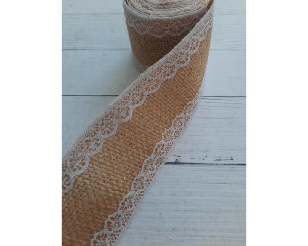 Лента из мешковины с кружевом, 5 см, цена за 2 м