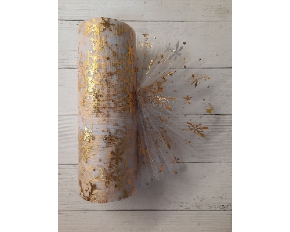 Фатин "Снежинки" 15 см*, белый/золото, цена за 1 м