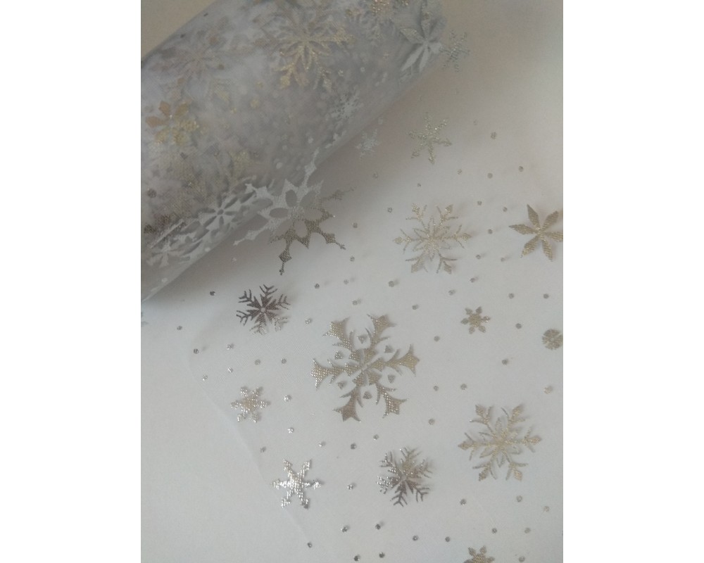 Фатин "Снежинки" 15 см*, белый/серебро, цена за 1 м