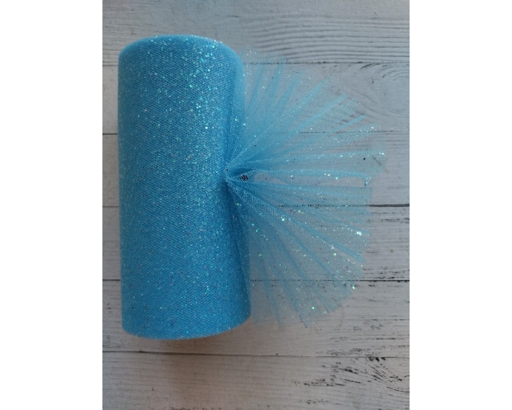 Фатин с блестками 15 см цв. голубой, цена за 1 м