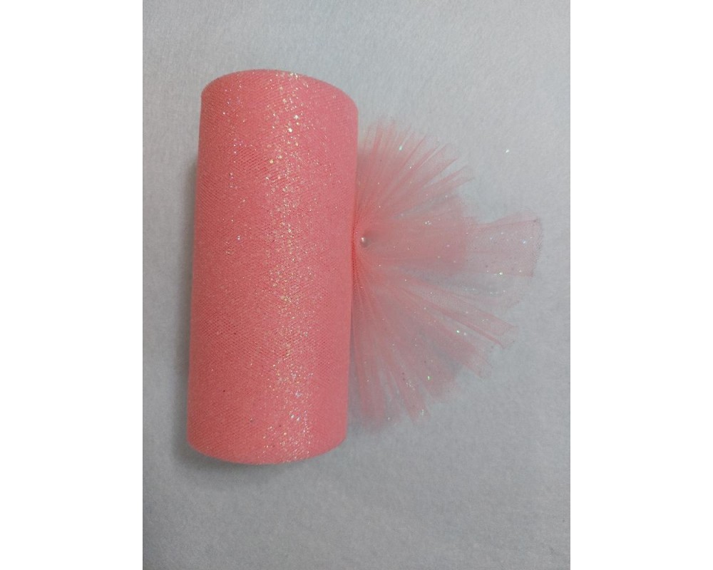 Фатин с блестками 15 см цв. персиково-розовый, цена за 1 м