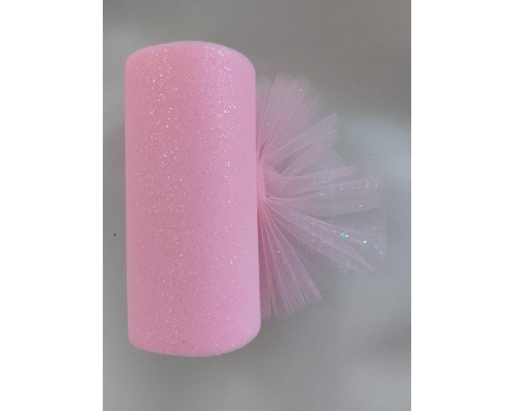 Фатин с блестками 15 см цв. светло-розовый, цена за 1 м