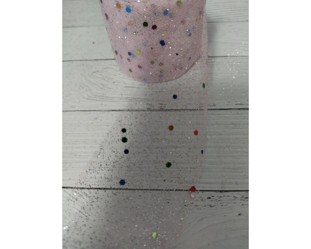 Фатин с цветными пайетками 5.5см (цв. св.розовый), цена за 1 м