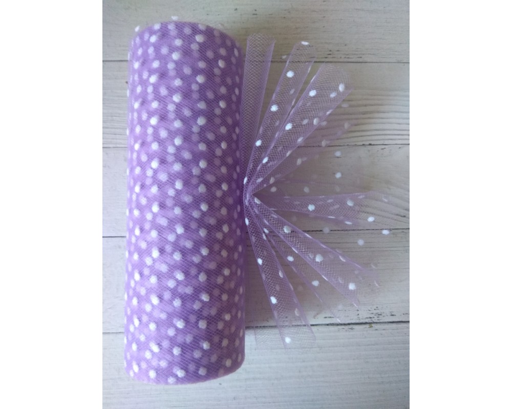 Фатин в горошек 15 см цв. сиреневый, цена за 1 м