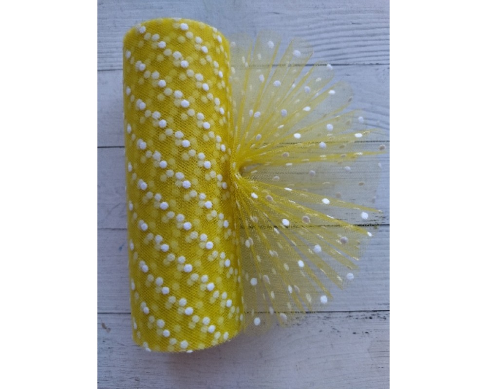 Фатин в горошек 15 см цв. желтый, цена за 1 м