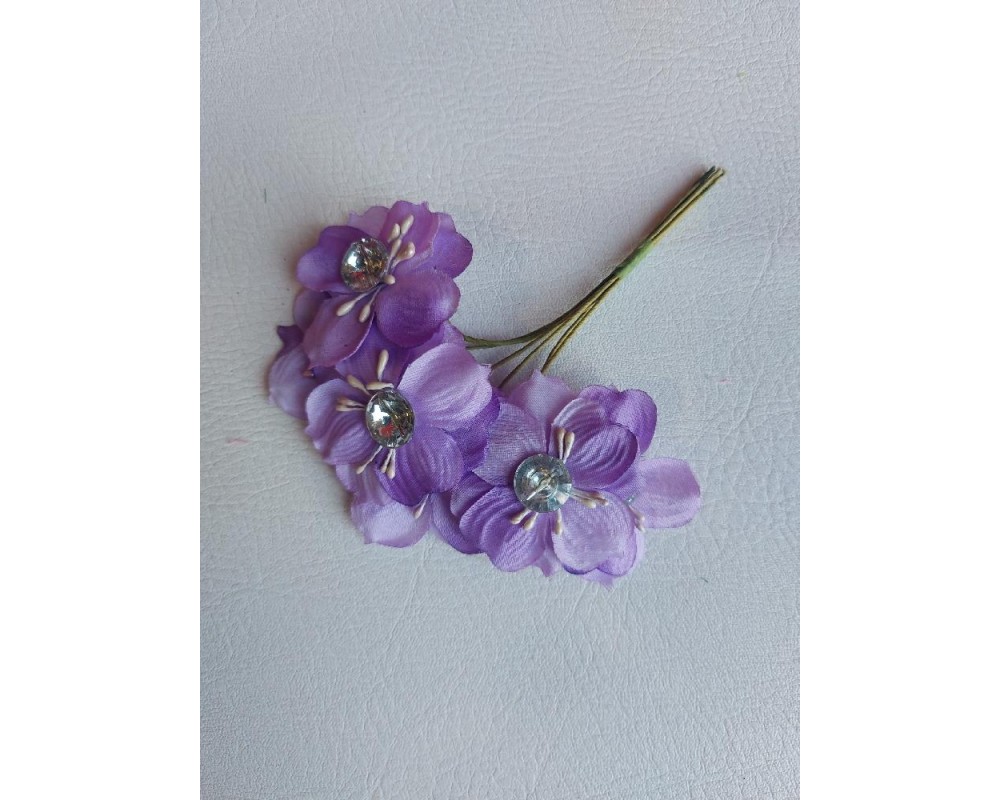 Букетики со стразой на веточке (6 шт) цв. фиолетовый, цена за пучок