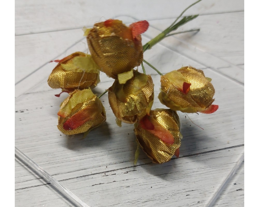 Бутоны 1,8*2,5 см на веточке (6 шт) цв. золото, цена за пучок