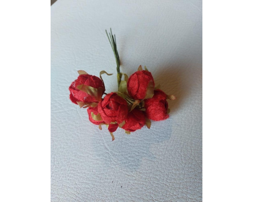 Цветы из ткани "бархат 2 см в пучках (6 шт) цв. красный, цена за пучок