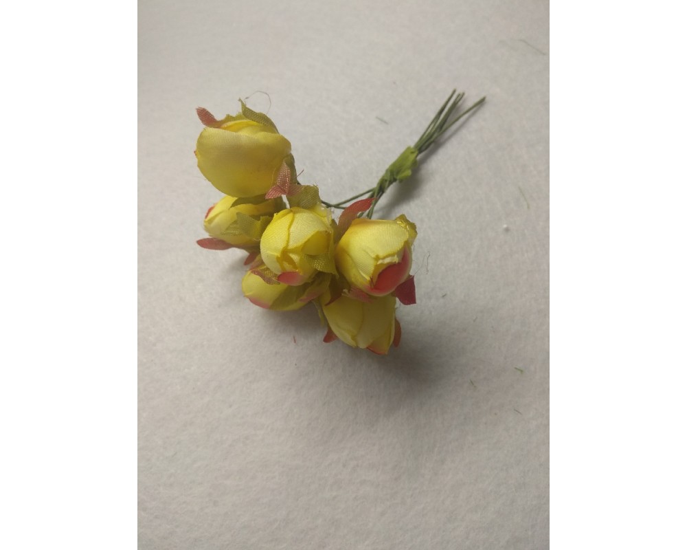 Цветы из ткани 1,8*2,5 см в пучках (6 шт) цв. желтый, цена за пучок