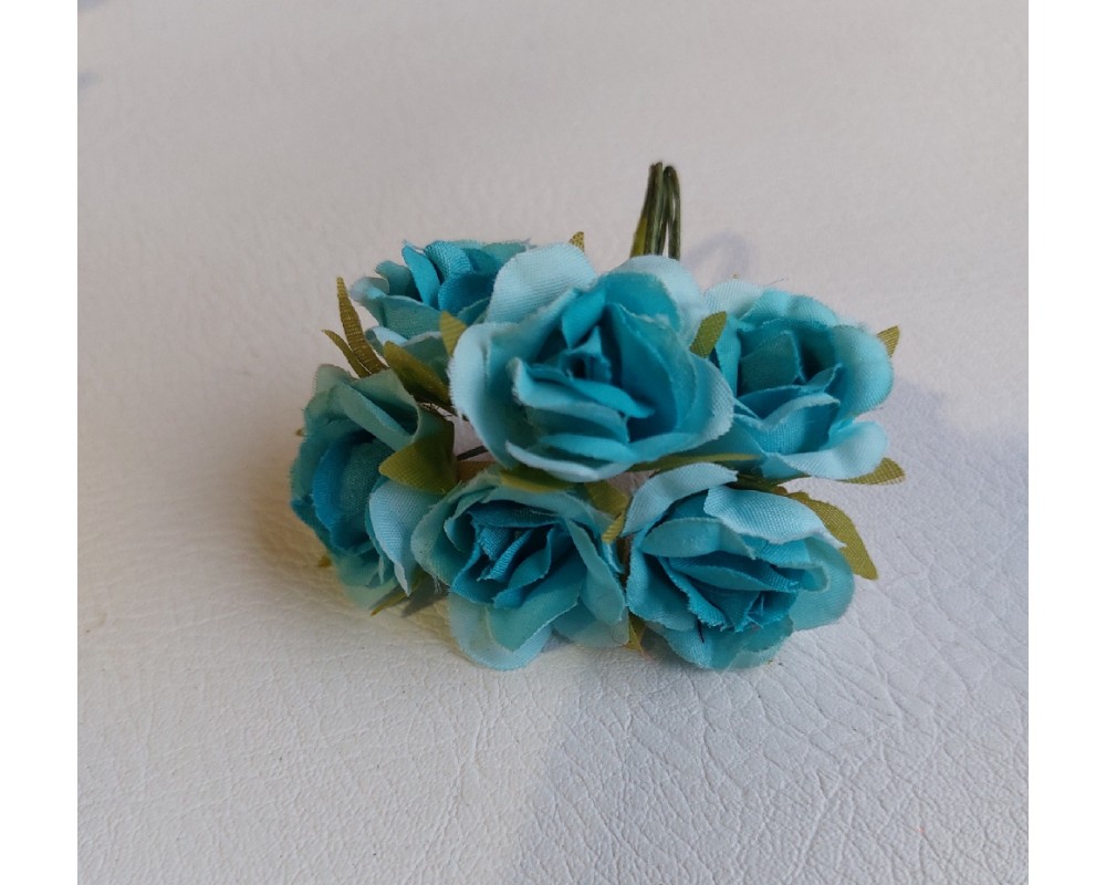Цветы из ткани 2,5 см в пучках (6 шт) цв. бирюзовый, цена за пучок