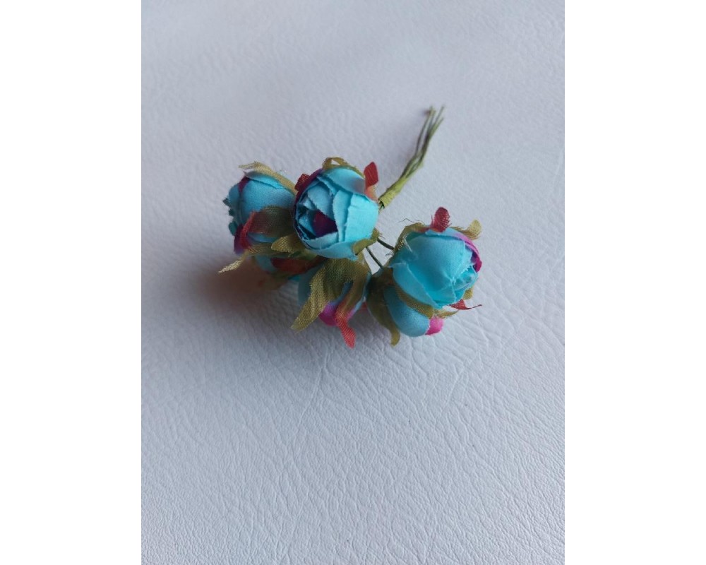 Цветы из ткани 2 см в пучках (6 шт) цв. голубой, цена за пучок
