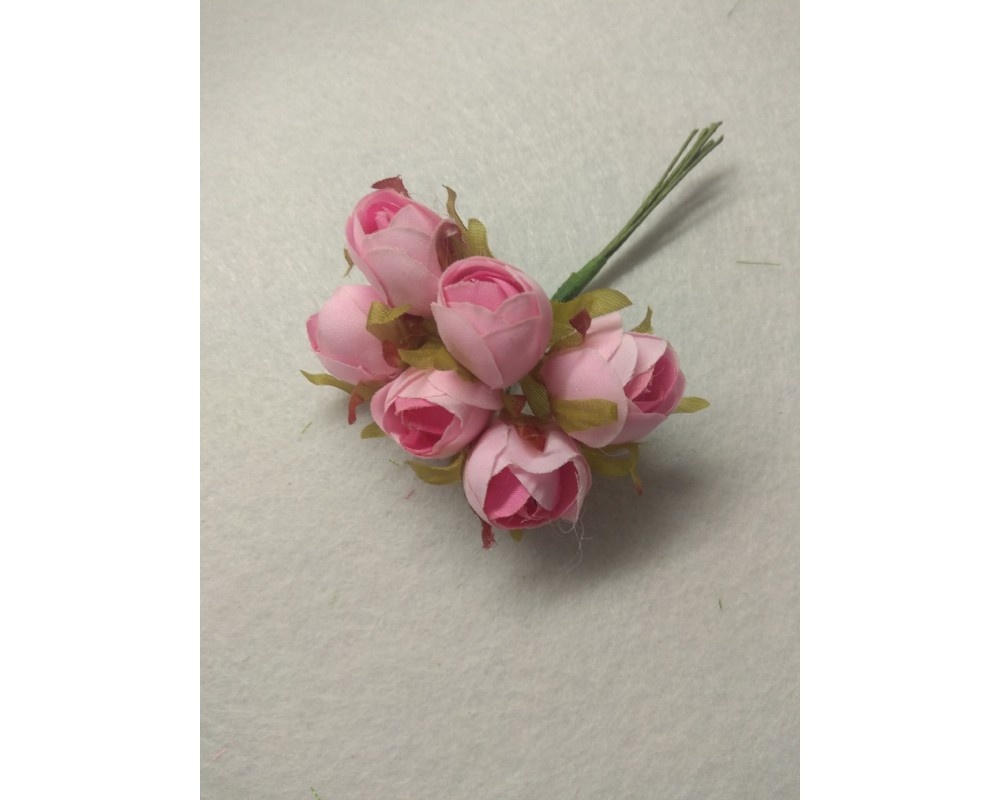 Цветы из ткани 2 см в пучках (6 шт) цв. розовый, цена за пучок