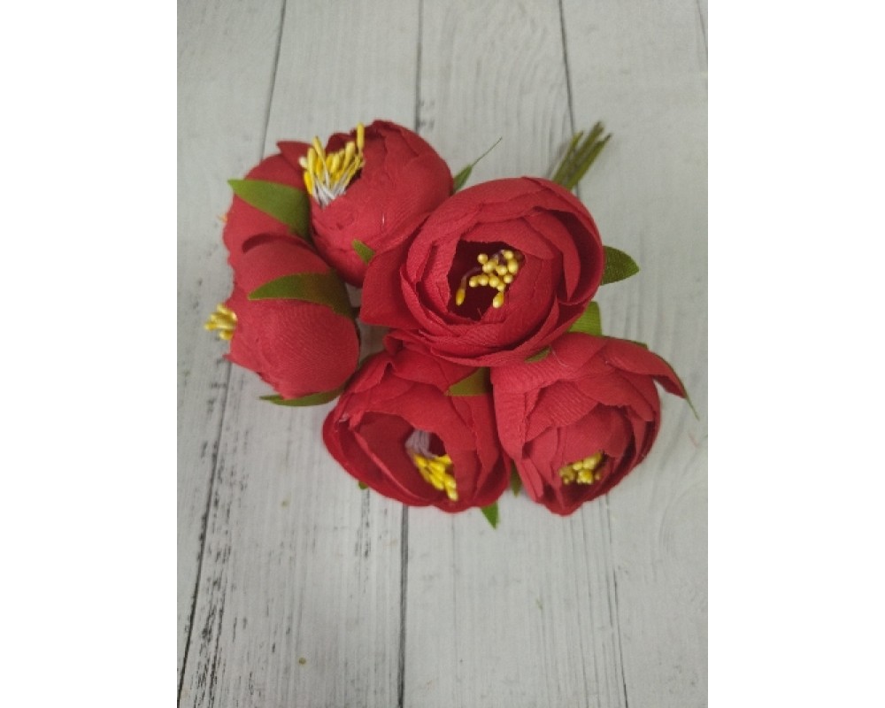Цветы из ткани 4-4,5 см в пучках (6 шт) цв. красный, цена за пучок