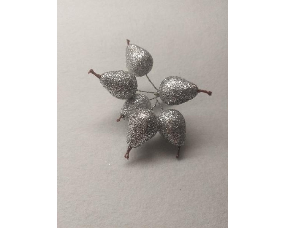 Груши в глиттере 25*45 мм цв. серебро, цена за 6 шт