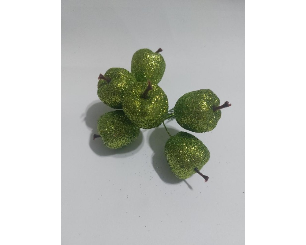 Яблоки в глиттере 25*45 мм цв. зеленый, цена за 6 шт