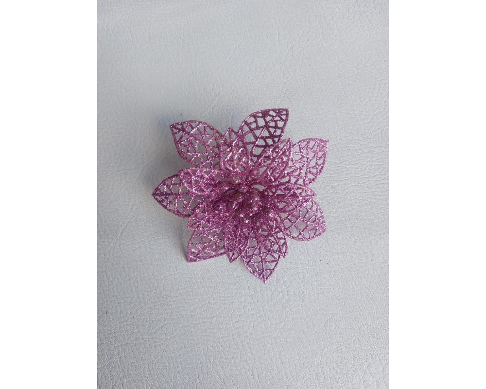 Новогодние украшения с блестками 9,5 см "Пуансетия",цв розовый, цена за 1 шт