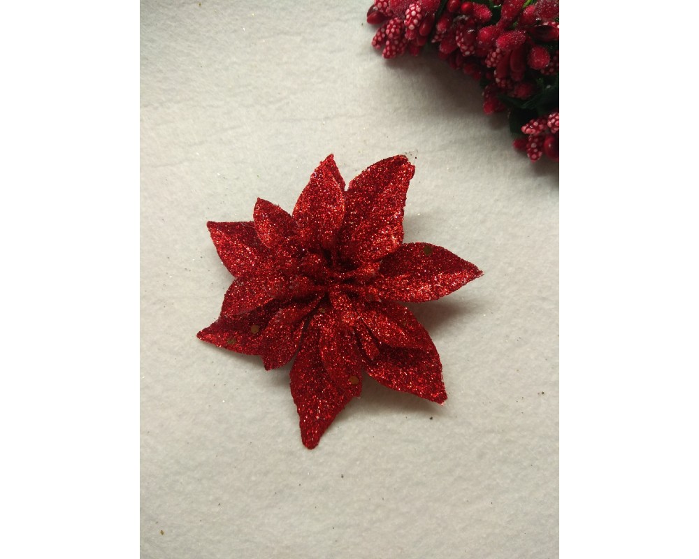 Новогодние украшения с блестками 6 см "Пуансетия",цв красный, цена за 1 шт