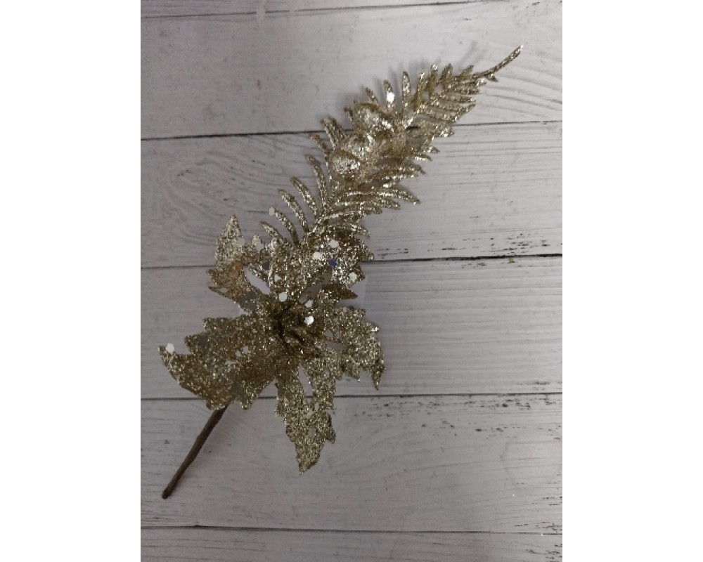 Новогодние украшения с блестками 9,5 см "Пуансетия",цв золото, цена за 1 шт