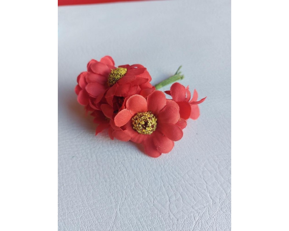 Ромашки 3 см на веточке (6 шт) цв. красный, цена за пучок