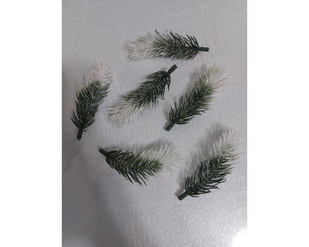 Ветки ели декоративные (пластик) 10см бело-зеленые, цена за 1 шт