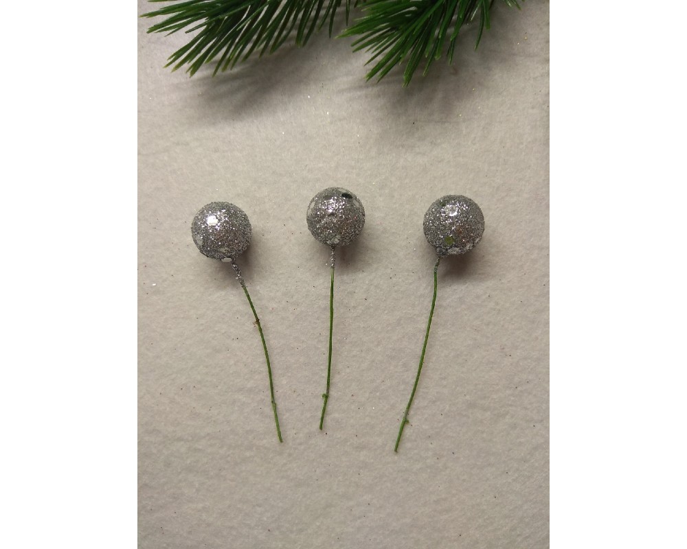 Ягодка на веточке с пайетками 1.5 см, цв. серебро, цена за 10 шт