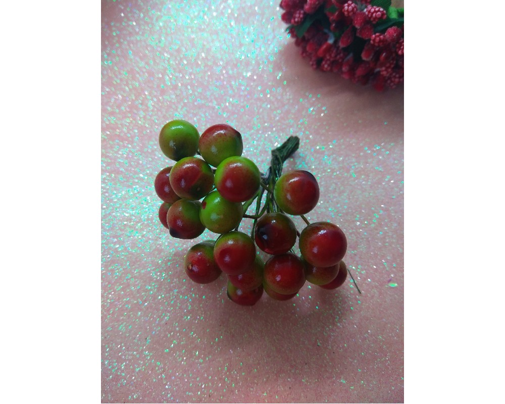 Ягодки глянцевые на проволоке 10 мм цв. бордово-зеленый, цена за 20 ягодок