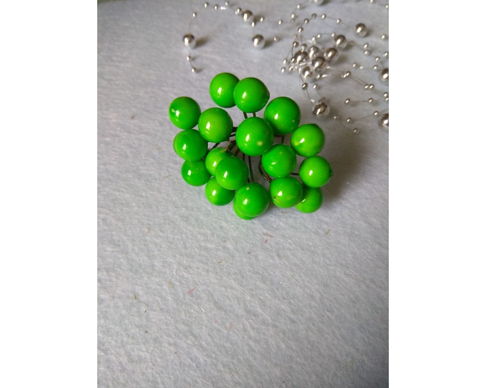 Ягодки глянцевые на проволоке 11 мм цв. зеленый, цена за 20 ягодок