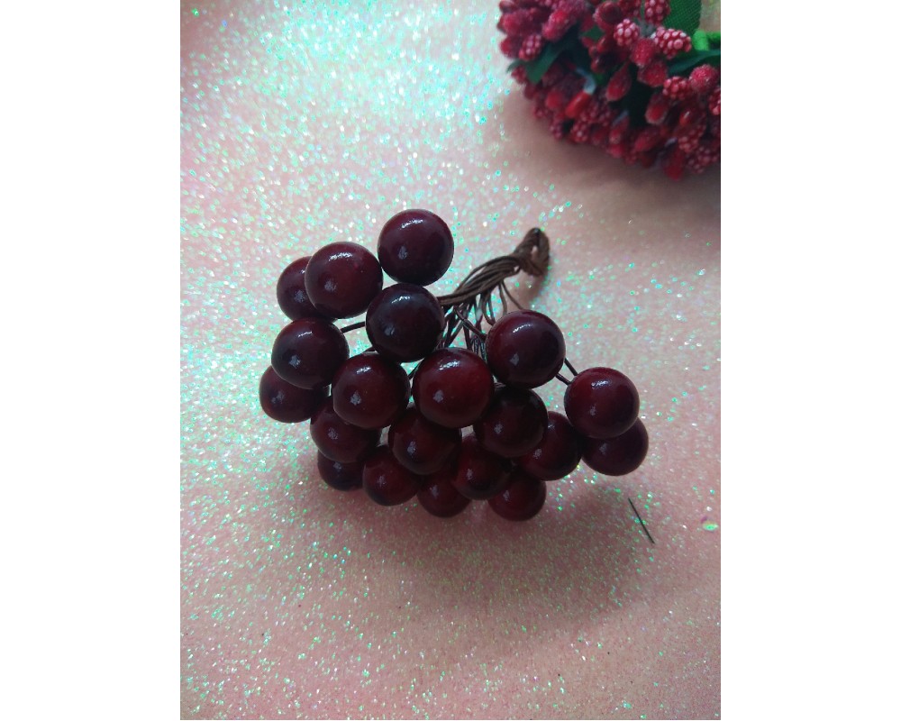 Ягодки глянцевые на проволоке 10 мм цв. темно-бордовый, цена за 20 ягодок
