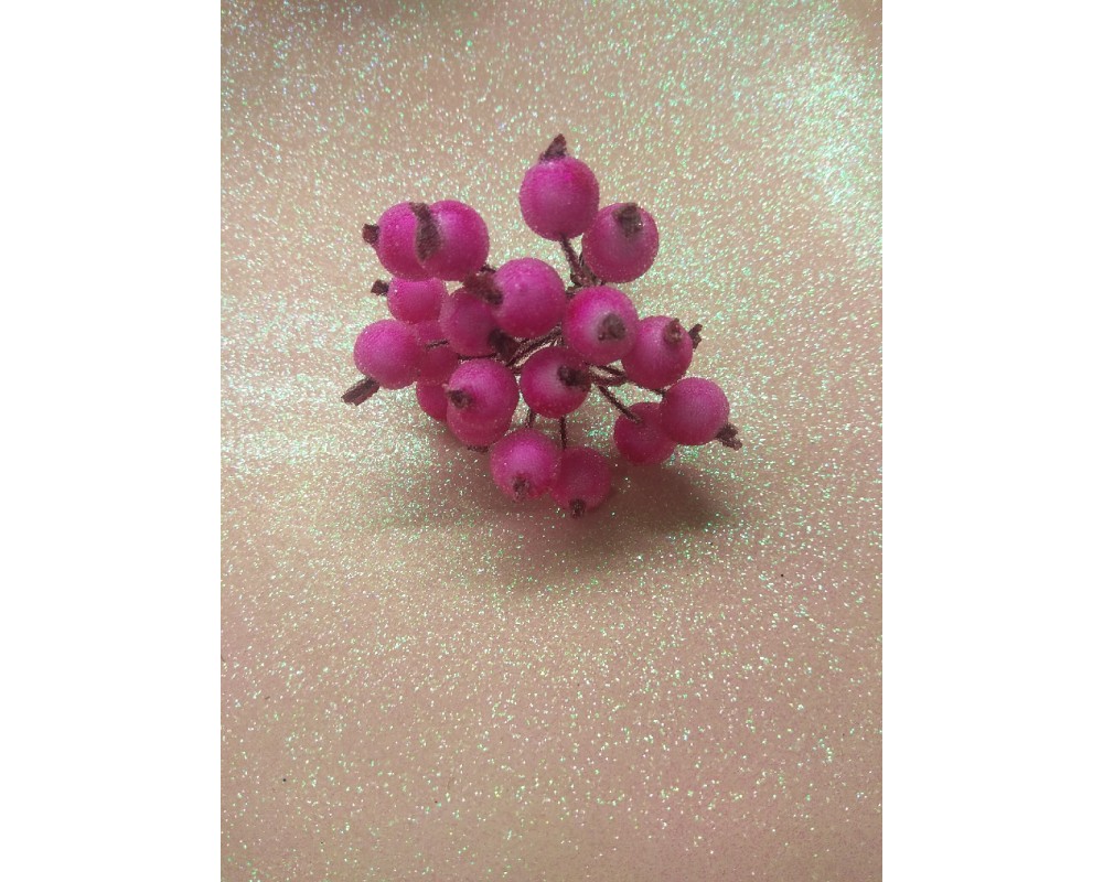 Ягодки сахарные на проволоке 12 мм цв. ярко-розовый, цена за 20 ягодок