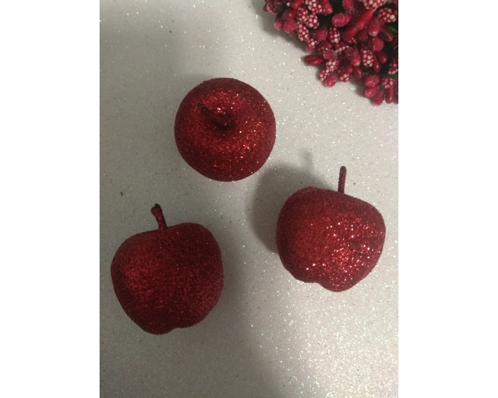Муляж яблока 3 см красный глиттер, цена за 1 шт