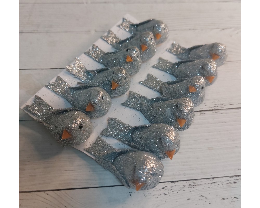 Птички декоративные с блестками 5*2,5 см, цв. серебро, цена за 1 шт