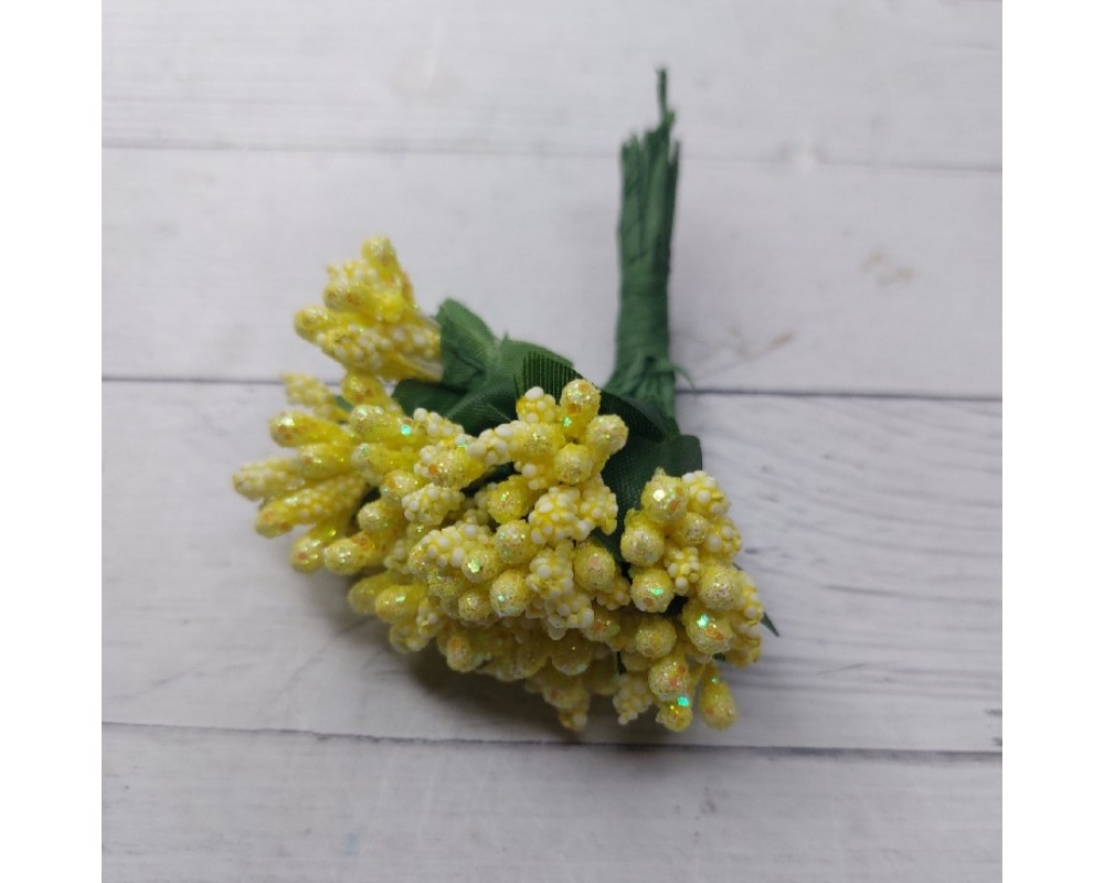 Тычинки с блестками на проволоке (12 шт) цв. желтый, цена за пучок