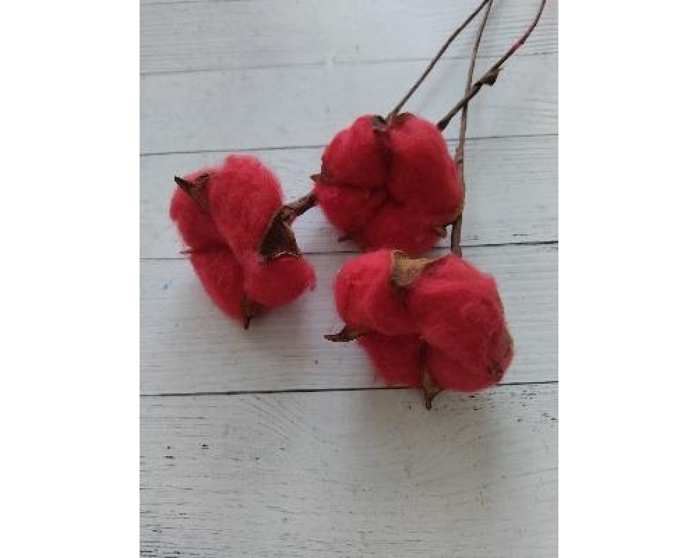 Ветка хлопок одинарный 30 см красный 26/1, цена за 1 шт