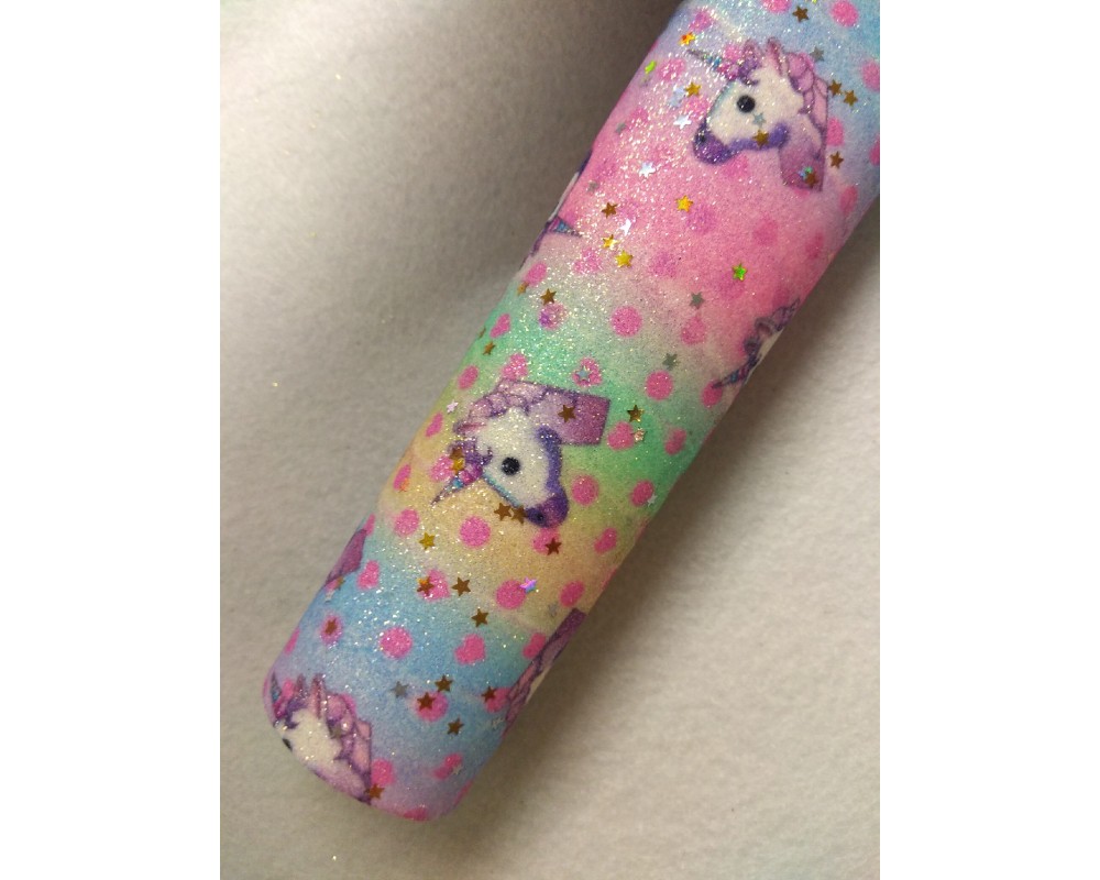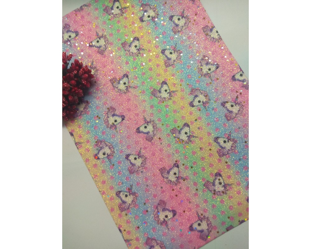 Кожзам с блестками, радуга "Единороги №2" 20*30 см, цена за лист