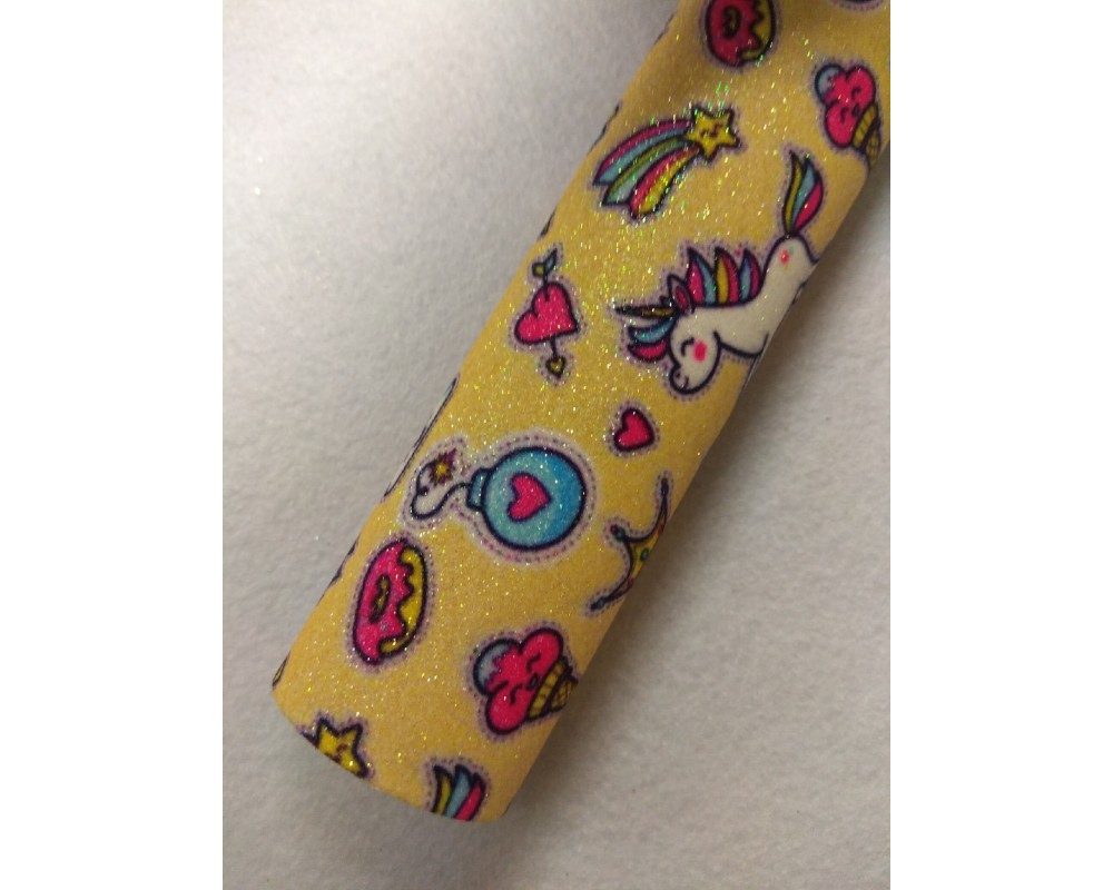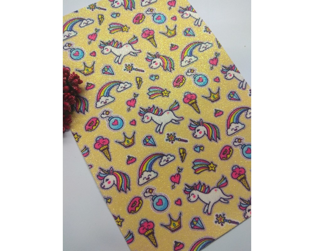 Кожзам с блестками "Единороги" 20*30 см, цена за лист