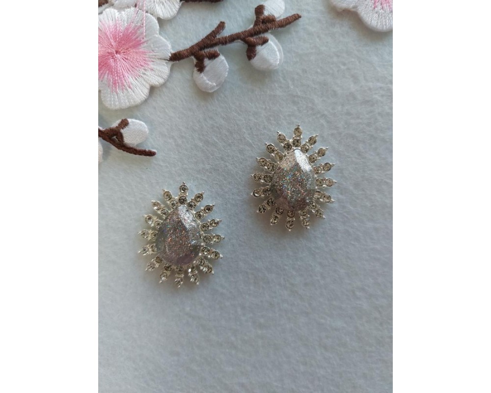 Серединка ювелирная 2,5*3 см цв. серебро с блестками, цена за 1 шт
