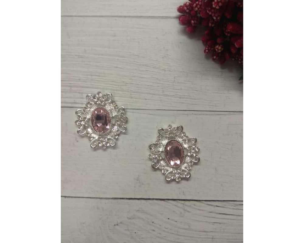 Серединка ювелирная 3*3,3 см серебро/розовый, цена за 1 шт