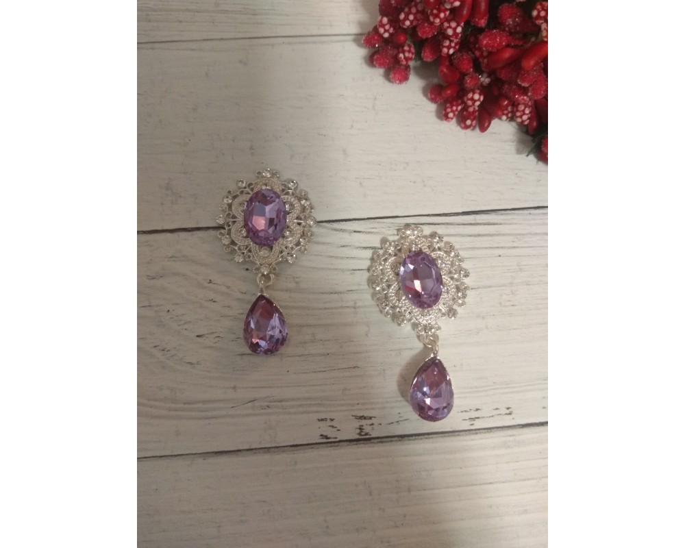 Серединка ювелирная с подвеской 2,5*4,5 см серебро/фиолетовый, цена за 1 шт