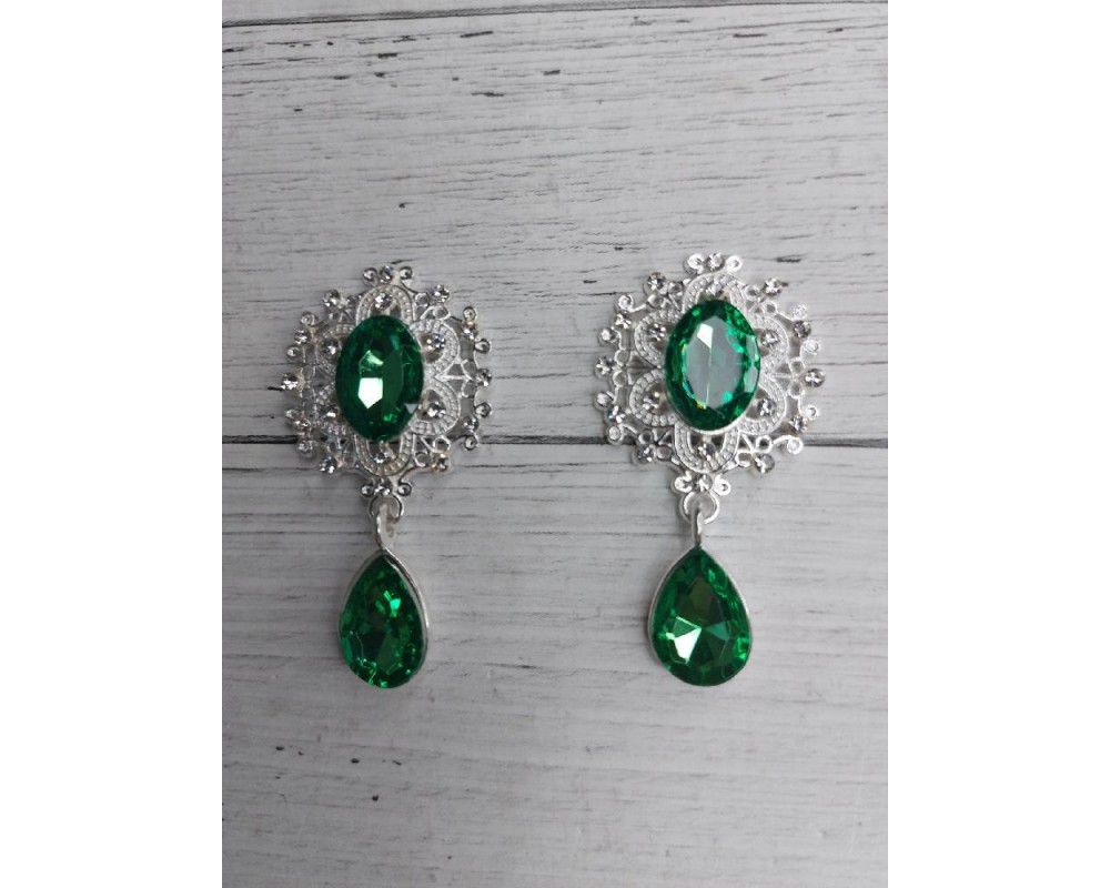 Серединка ювелирная с подвеской 2,5*4,5 см серебро/зеленый, цена за 1 шт